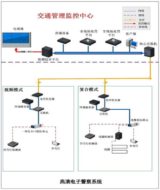 新一代高清电子警察系统,是一种面向城市交通管理的路口型综合违法监测记录系统,可实现卡口过车记录、路口可根据车流量自动调整过车时间、电警违法检测、视频监控、道路交通参数采集四位一体的功能,有助于公安交通管理部门实现对闯红灯、逆向行驶、压线行驶、不按车道行驶等违法行为的及时查处。全高清视频监控,方便指挥中心全面直观地掌握城市道路交通路况;无延时数字监控,针对部分重点路口,可采用HD-SDI高清方案,数据未经压缩,画面真实性更高,传输几乎无延时,可帮助交警部门更好的开展手动抓拍业务;视频流媒体网络传输与流媒体直写存储技术,保障系统的长期稳定运行;可集成智能分析、行为识别等特色功能,通过对异常行为和异常交通事件的检测,触发报警信号和设备联动,轻松实现智能化监控;高度集成的视频综合平台,双交换技术设计,控制延时小,且支持原有模拟矩阵系统接入。