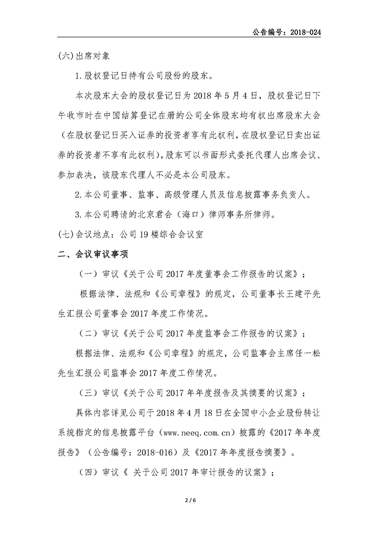 爱体育(中国)官方网站-登录入口2017年年度股东大会通知的公告