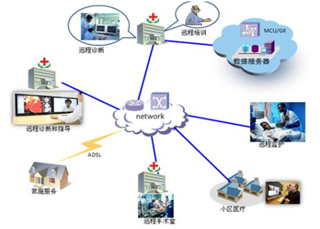 远程医疗运用计算机、通信、医疗技术与设备,通过数据、文字、语音和图像资料的远距离传送,实现专家与病人、专家与医务人员之间异地“面对面”的会诊。远程医疗不仅仅是医疗或临床问题,还包括通讯网络、数据库等各方面问题,并且需要把它们集成到网络系统中。